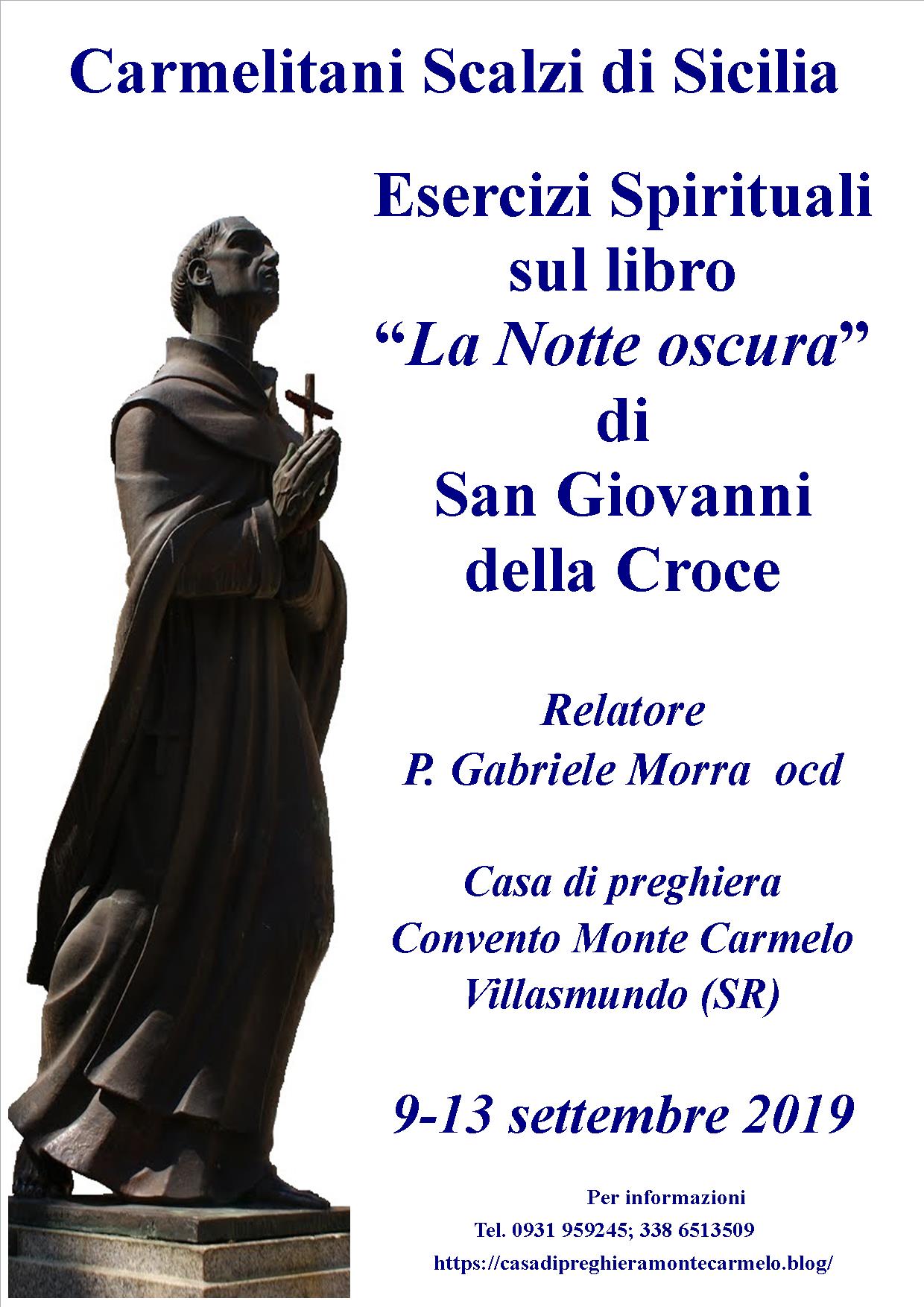 Dopo tre giorni di studio su san Giovanni della Croce, la Casa di preghiera Monte Carmelo ha pensato di proporre gli Esercizi Spirituali sulla dottrina del Santo. Essi sono un invito ad un’esperienza di Dio, del suo amore, della sua bellezza. “Chi vive gli Esercizi in modo autentico sperimenta l’attrazione, il fascino di Dio, e ritorna rinnovato, trasfigurato alla vita ordinaria, al ministero, alle relazioni quotidiane, portando con sé il profumo di Cristo”.