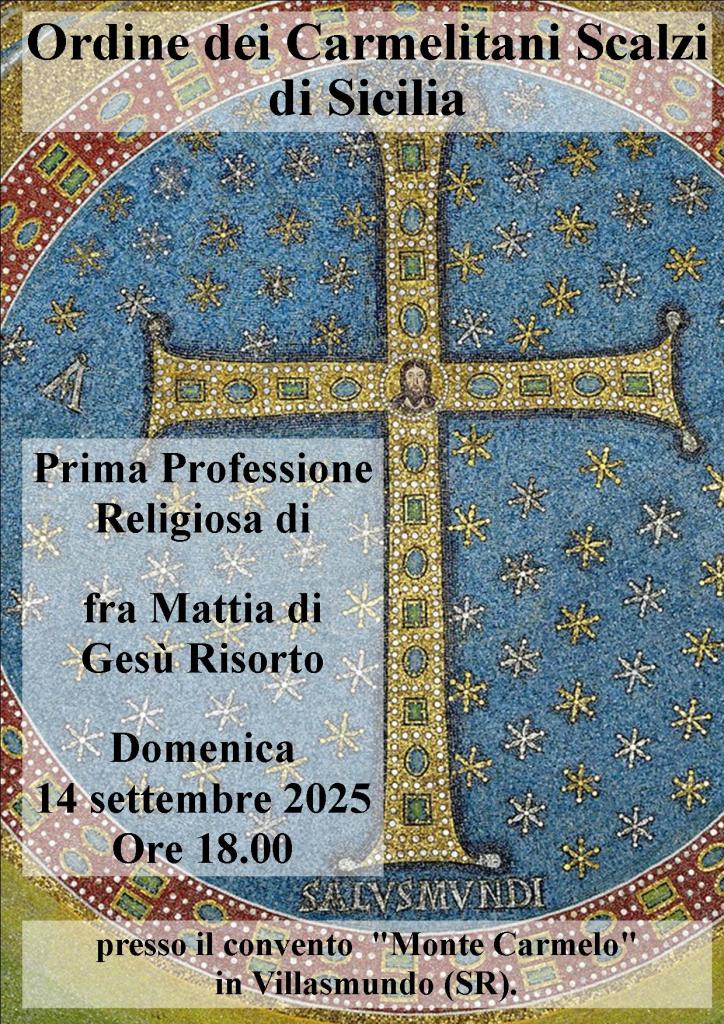 Il 14 settembre sarà una Domenica di festa e di preghiera per il Carmelo di Sicilia, che – frati, monache e secolari – si unisce in preghiera e accompagna il primo passo di Fra Mattia di Gesù Risorto nella Sequela di Cristo e nell’Ordine della beata vergine Maria Regina del Monte Carmelo.