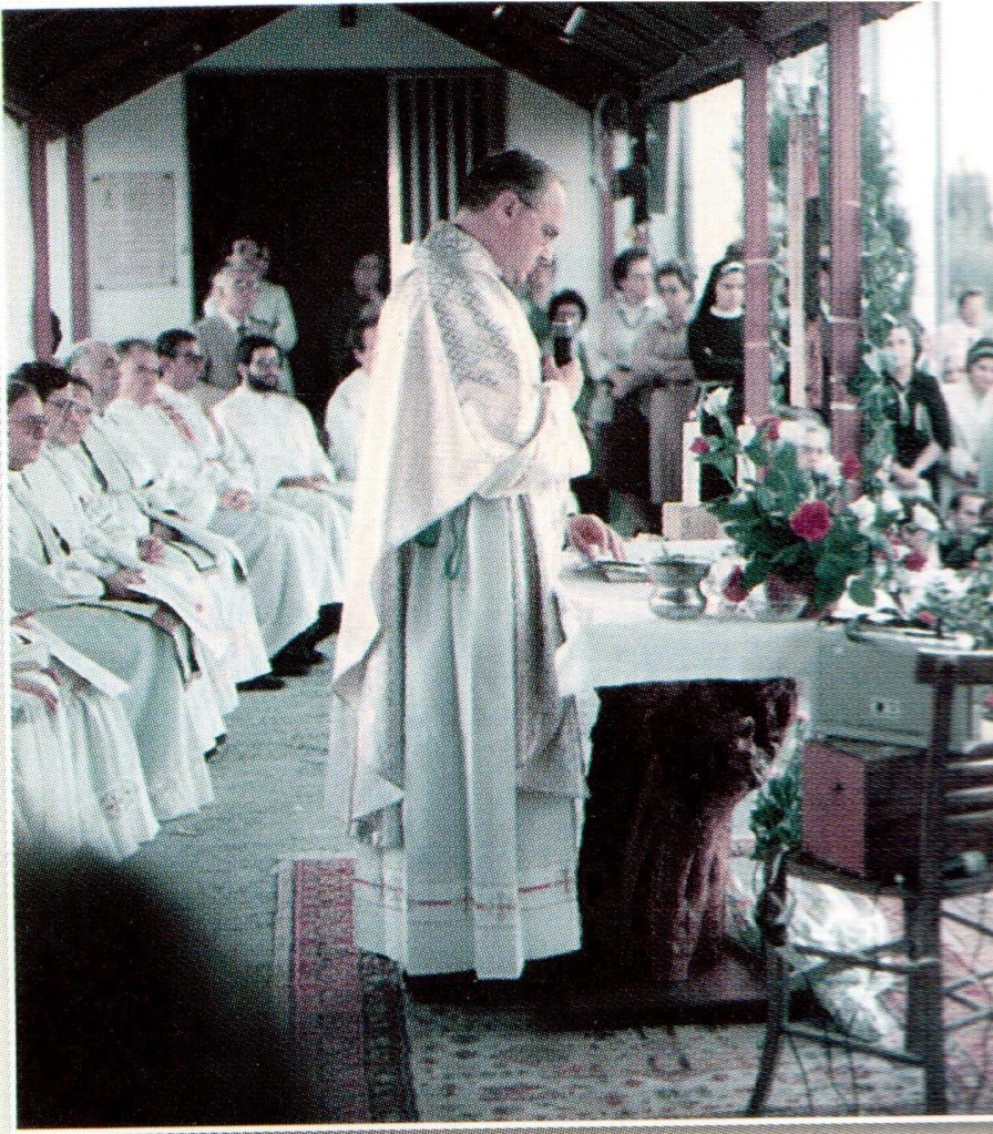 Il terreno c’era, l’acqua c’era, le piante stavano crescendo, il posto era bello…non si poteva non sognare!! E fu in uno di questi momenti che si approfittò di tracciare le fondazioni di una futura Cappella alzando un muretto di circa un metro. Lì doveva nascere la futura Cappella. durante una visita dell’allora Provinciale, venne spontaneo domandarsi cosa fosse quella recinzione. Di fronte all’imbarazzo, fu il Provinciale stesso a rompere il silenzio:”Ho capito! Questo è un recinto per le pecore!!”