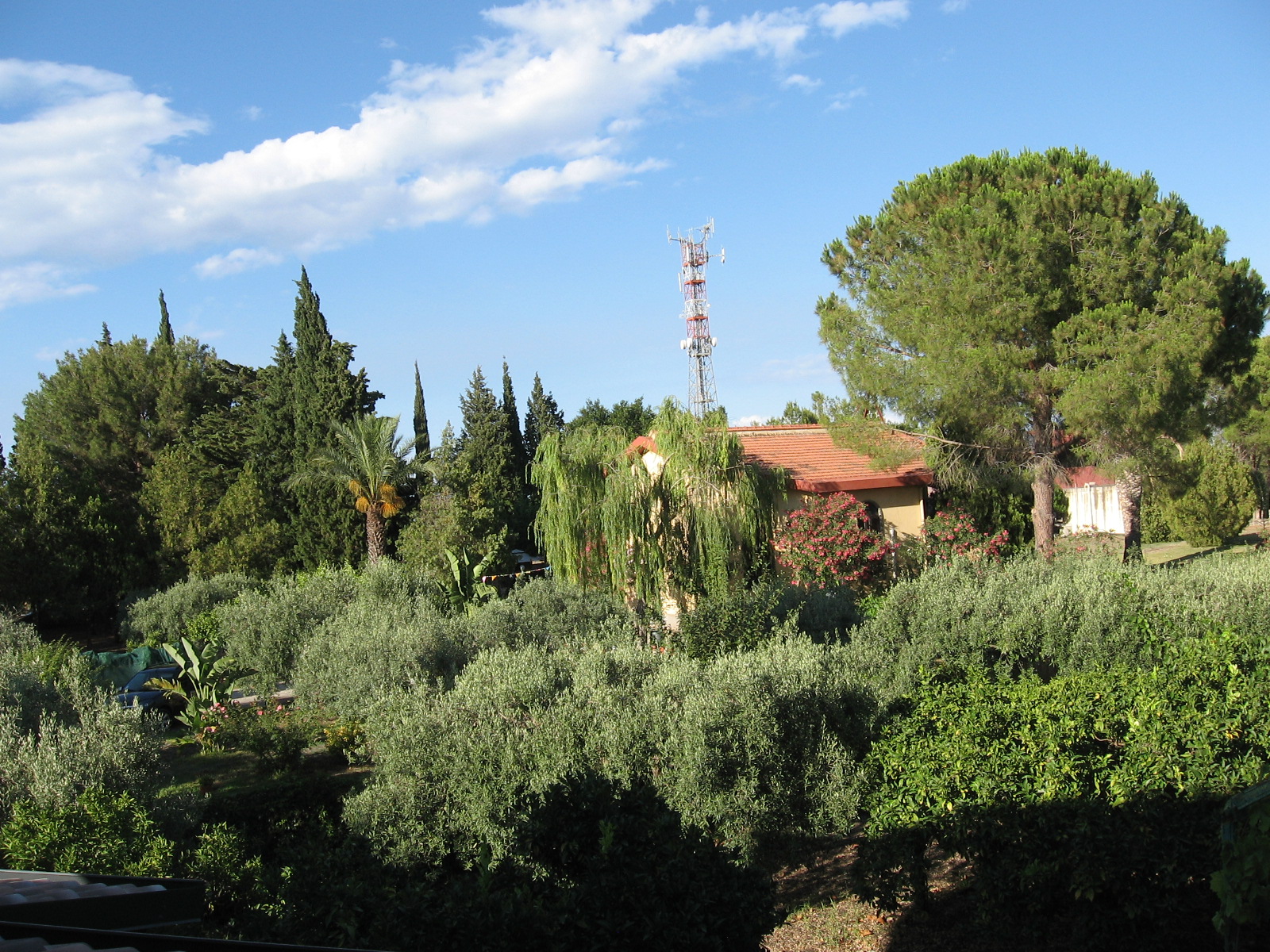 Dentro un recinto di cipressi e di pini abbiamo un giardino di aranci, olivi, viti e un frutteto con varie piante generose d’ombra e di frutta.