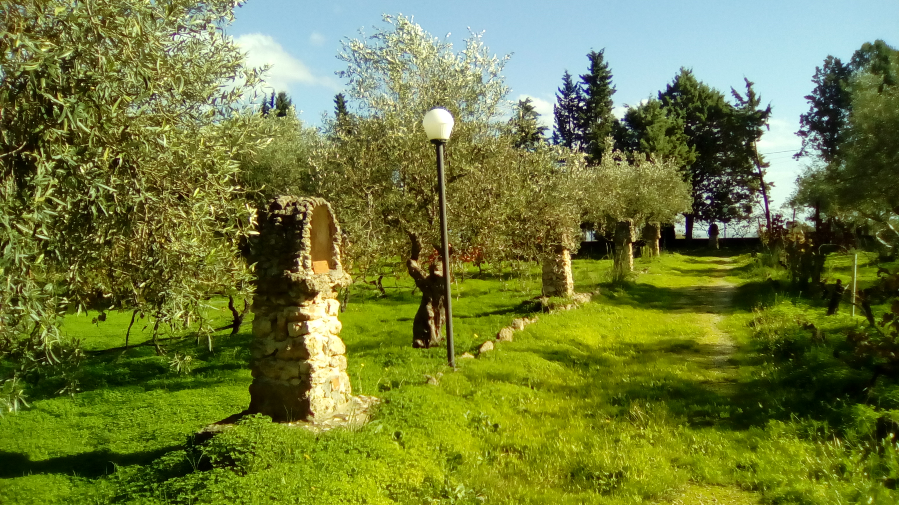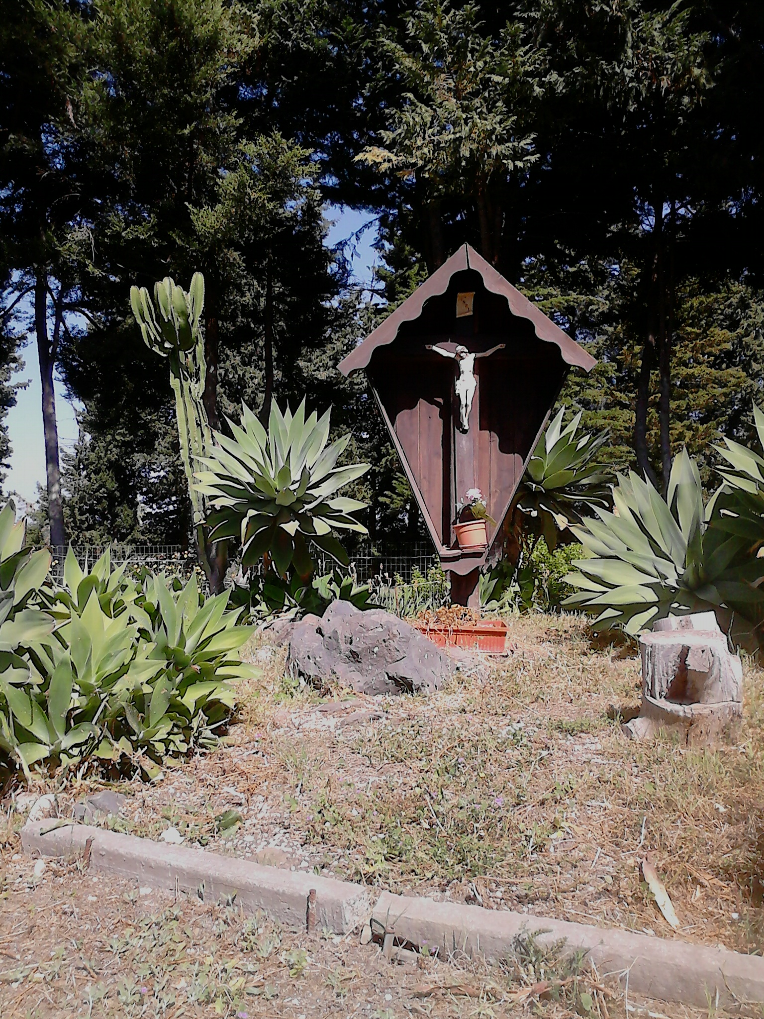 Possiamo accompagnare Gesù al Golgota e al sepolcro lungo un percorso di un centinaio di metri che si snoda tra ulivi e viti e scandito dalle 14 stazioni erette con l’aiuto di vari benefattori su rustici pilastri