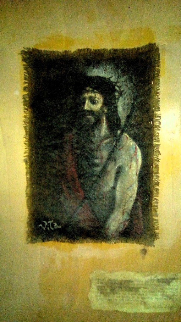 Entrando ci accolgono due immagini di Gesù incoronato.